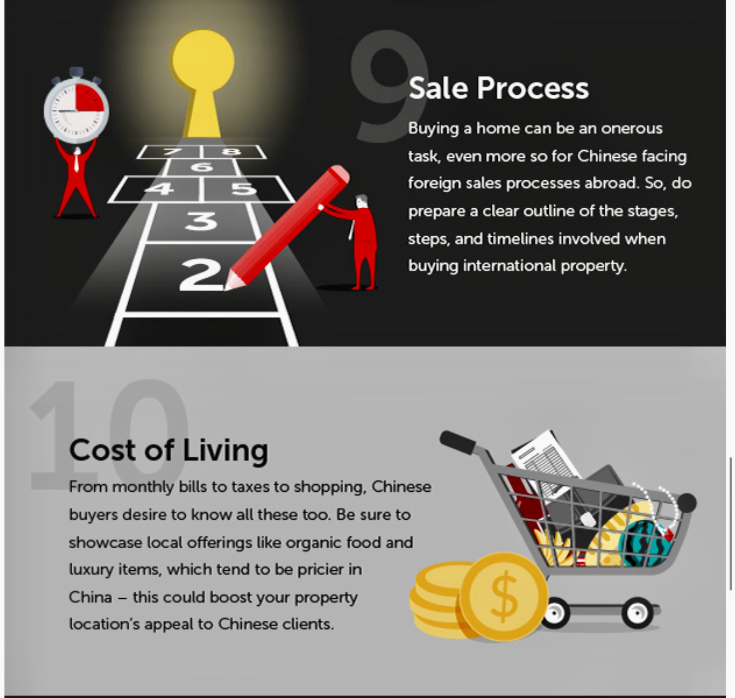 然而,在海外投资时,他们普遍关注类似的问题——在我们的居外信息图中,我们总结了他们在购房前通常考量的十大标准。"