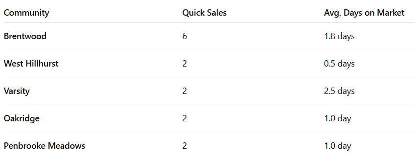 Homes in inner-city and well-established areas (West Hillhurst, Varsity) sold especially fast, often at or above list price.