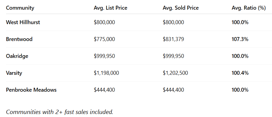 Brentwood led the city with 6 fast sales, averaging $831,379 per home.