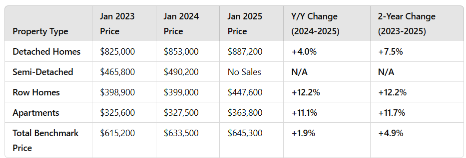 Row homes and apartments saw the strongest price growth, reflecting demand for affordable housing options.