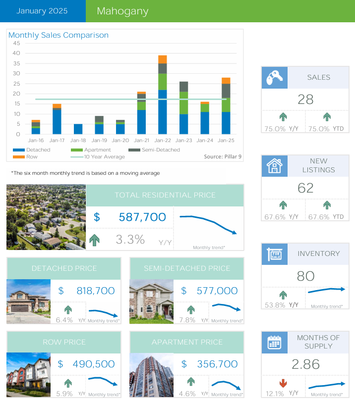 Heading into Q4 2025, Mahogany’s market is expected to stabilize further, with inventory levels moderating and prices holding near current benchmarks. The community’s lake access, school catchments, and vibrant amenities continue to make it one of the most desirable master-planned areas in Calgary’s southeast.