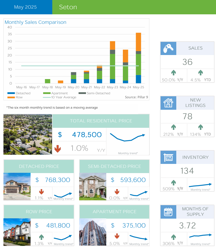Q3 2025 activity in Seton remains strong versus its 10-year average (only 21 quarterly sales historically). Inventory growth and slightly longer selling times show the market cooling from 2023-24 highs, but buyer demand continues thanks to Seton’s live-work-shop convenience.
